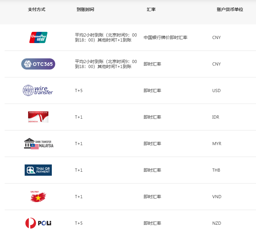 用便捷的出入金方式开始交易。我们一直在努力使您的出入金过程更安全,更便利。